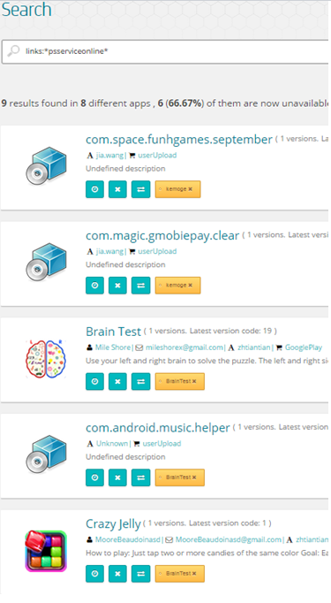 On the other hand, CheckPoint reported that some of the domains found inside "Brain Test" malicious app seems to be present in "Kemoge" adware family as well: