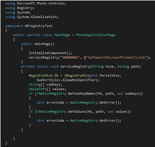 Ejemplo de código para acceder al registro de Windows Phone 8