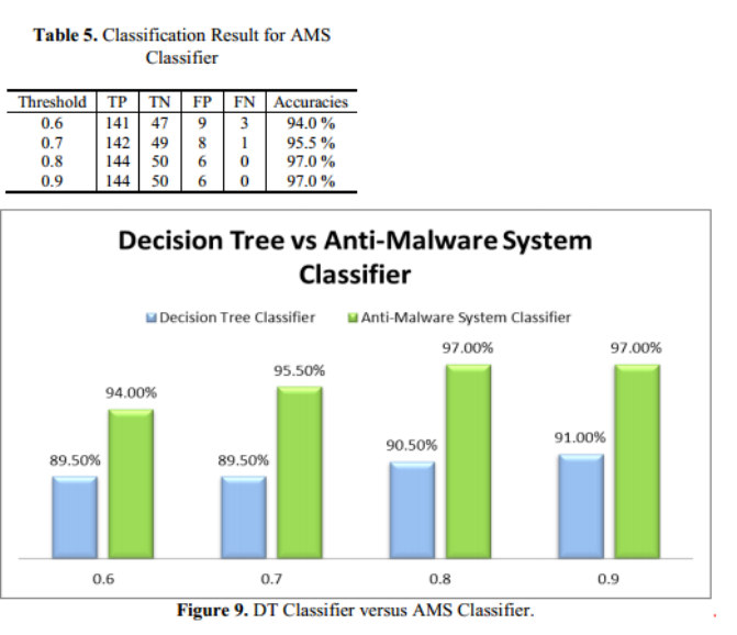 Este documento se complementa con la descripción del framework creado para poner en práctica los experimentos, y descrito (aunque de manera muy somera) en "A Framework for Optimizing Malware Classification by Using Genetic Algorithm" de 2011. El artículo resulta pobre en la descripción de detalles. La clasificación mejora con respecto a los árboles de decisión, pero solo para cuatro grupos y muy levemente. En el mejor de los casos se llega al 97% de precisión, con una tasa de falsos positivos excesivamente alta.