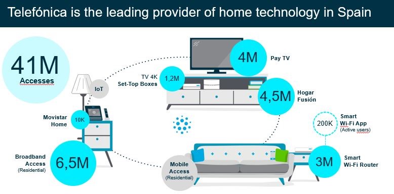 Experiencias en el hogar impulsadas por la IAEn España también somos líderes de seguridad convergente. Telefónica es el principal proveedor de tecnología para el hogar en España con 41 millones de accesos.