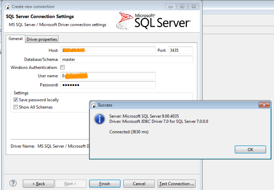 Conexión a la base de datos exitosa con credenciales obtenidas del Aplicativo Cliente
