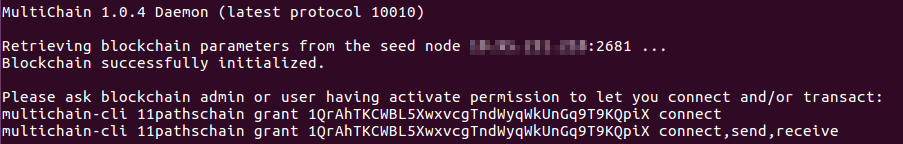 Para facilitar que un tercero se pueda conectar a nuestra cadena de bloques, deberá instalarse el software de multichain y conectarse a nuestro nodo siguiendo los pasos que ya nos muestra el cliente al arrancar el nodo original.