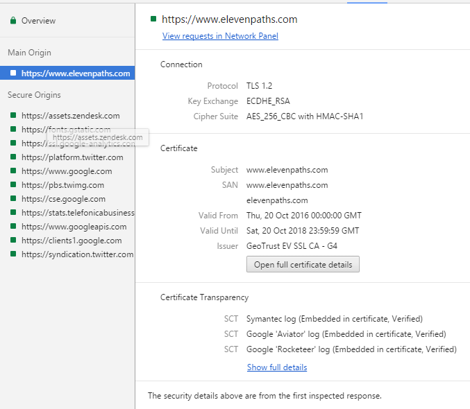 En el caso de Eleven Paths, el SCT está en el propio certificado incrustado