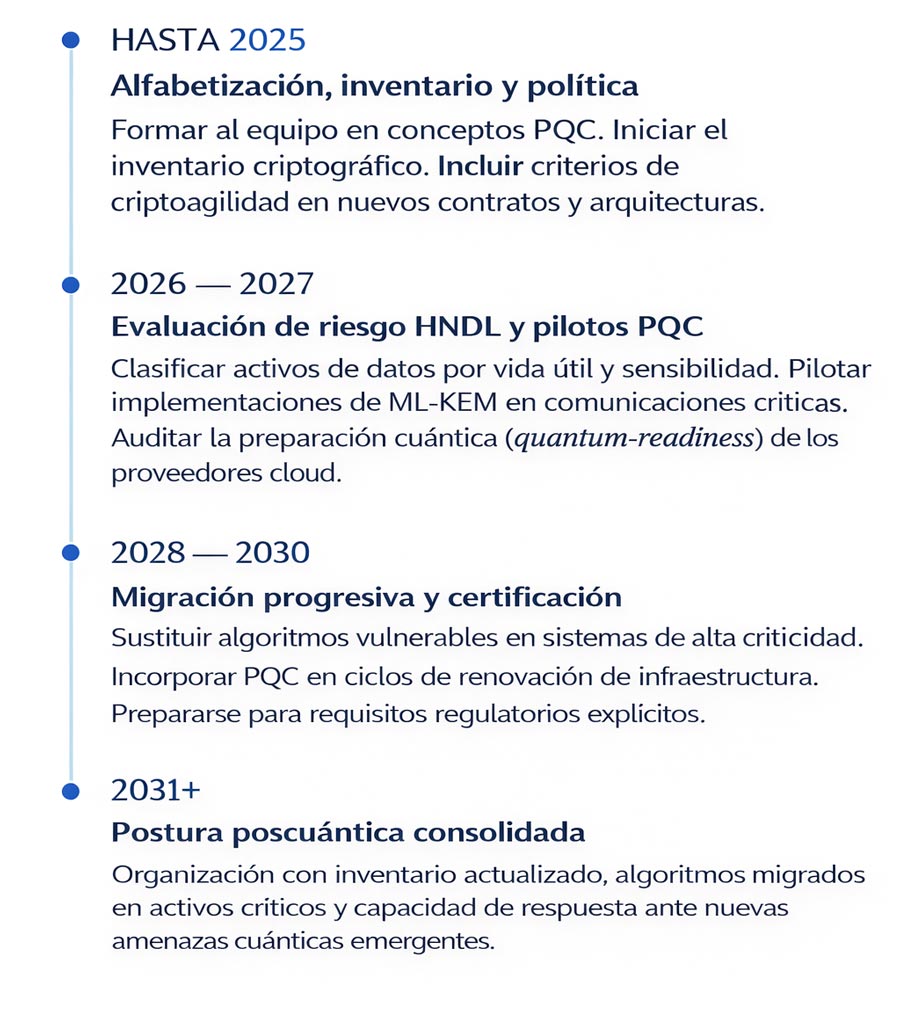 La respuesta está en entender que la migración criptográfica no es un evento, es un proceso con una duración mínima de cinco a ocho años en empresas medianas y grandes. Hay que empezar antes de necesitarlo.