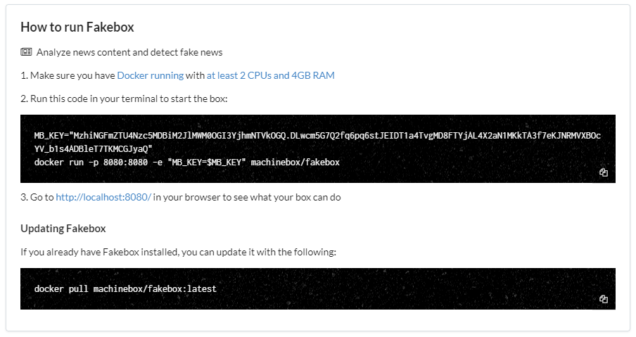 Figura 2. Instrucciones para hacer uso de Fakebox.