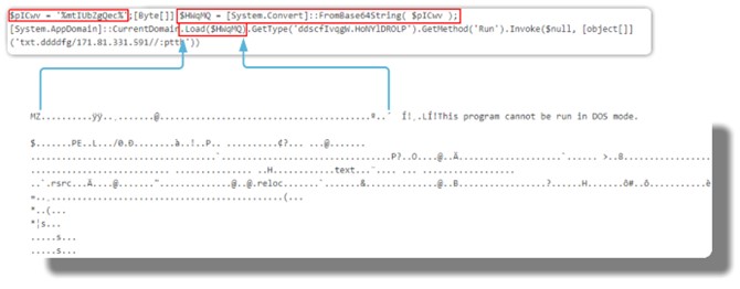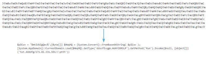 - Después realizaría de nuevo una ejecución con powershell para lanzar otro script ofuscado que finalizaría en la inyección de código a un software legítimo (Usando AppLaunch o InstallUtil entre otras).