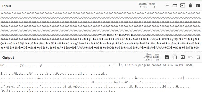 Realizando el reversing del código obtenemos la información para el desofuscado y veremos otra cabecera MZ (PE):