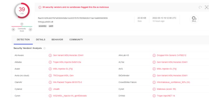 Encontramos dicho binario bastante reportado en VirusTotal, lo que indica que estas fases finales no son tan cambiantes.