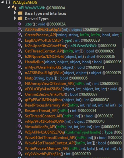 , aunque puede utilizar cualquier binario relacionado con .NET. Una vez inyectado tendríamos LokiBot dentro de un proceso legítimo utilizando la técnica de Process Hollowing: