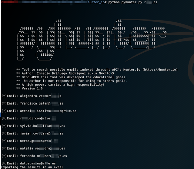 - Pyhunter: automatización del servicio de hunter.io a través de la API gratuita.