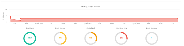 Desde el equipo de hacking de ElevenPaths SSPP, realizamos estas campañas orientadas a concienciación para saber si los posibles empleados caen en las mismas. Para llevar a cabo la monitorización de la campaña, seleccionamos una solución Open Source, la cual hemos aplicado un desarrollo propio customizado para que se adapte a nuestras necesidades. En la siguiente imagen, se puede identificar el dashboard de una campaña: