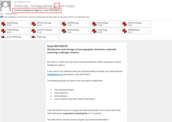 En mi caso concreto, también recibí un correo con supuestas “capturas” de ese vídeo, que obviamente no eran archivos reales (OJO: TAMPOCO ABRIRLOS) proveniente de la misma CIA diciendo que tenían una investigación relacionada conmigo. Interesante, cuanto menos….