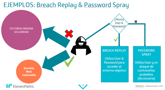 Esquema básico de ataque breach replay y password spray