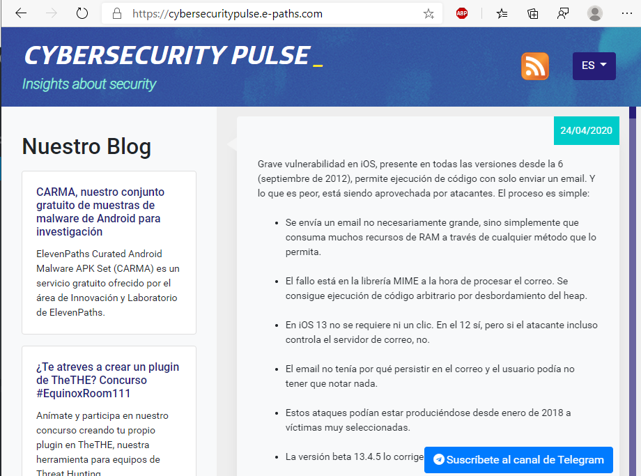 Nuestro canal de Telegram: https://t.me/cybersecuritypulse