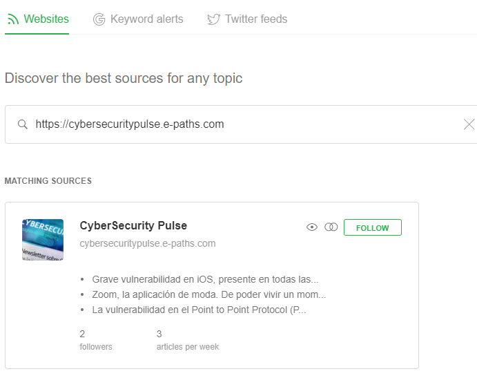 Para los que todavía usen el RSS de forma "pura", podéis consumir CyberSecurity Pulse desde este enlace https://cybersecuritypulse.e-paths.com/es/feed