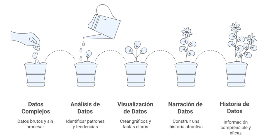 No solo se trata de mostrar números o gráficos sino también de contar una historia que llame la atención de la audiencia y facilite la comprensión de datos complejos. Esto es lo que llamamos data storytelling, o la forma de contar una historia con datos.
