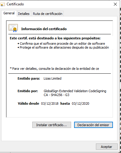 Esto es un movimiento un poco extraño por parte del atacante. Entendemos que solo disponía de un certificado SHA256, y necesitaba actualizar el sistema para que el Windows víctima pudiese comprobar la validez. El hecho de que esté firmado por SHA1 puede ser una simple prueba previa del atacante.