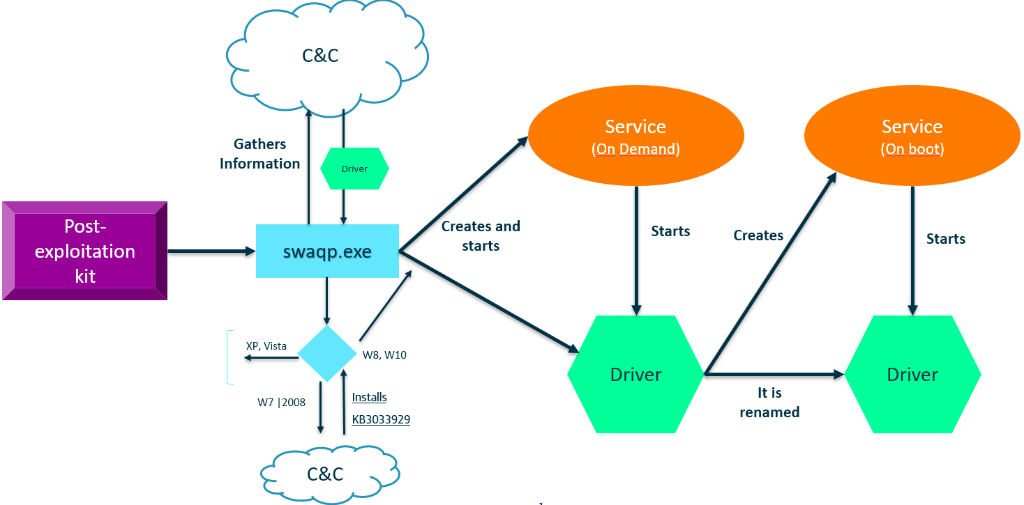 Hasta ahora, tenemos un malware que aplica una actualización legítima en el sistema, y que descarga lo que parece un driver (que debe estar firmado para poder ser instalado). ¿Por qué actualizar el sistema operativo de una víctima? Para responder a esta pregunta es necesario comprender los cambios que incluía este parche y cómo se relaciona con la instalación del rootkit.