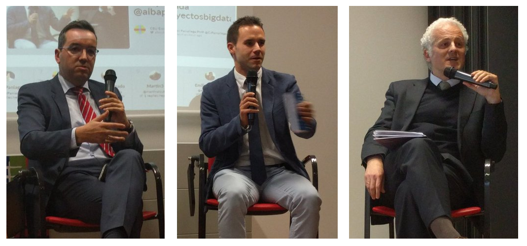 Después de esta ponencia tuvimos una mesa redonda moderada por Jesús de Prado, Subdirector de Desarrollo de la Escuela de negocios CEU Castilla y León, quien comenzó animando a los ponentes participantes a explicar su experiencia con proyectos Big Data.