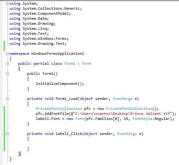 Este programa, es un simple ejecutable que carga un tipo de letra "Prince Valiant" alojado en el escritorio, y no en el el directorio oficial.