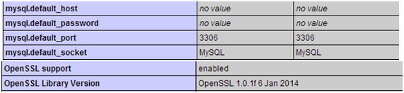 - Versiones de aplicaciones y servicios. La información que se puede obtener con este archivo es importante. Por ejemplo en las siguientes imágenes podemos comprobar que existe un MySQL en el puerto 3306 (detalle que se puede conocer también con un nmap sin demasiado esfuerzo); que la versión de OpenSSL es posible que sea vulnerable a HeartBleed (CVE-2014-0160); o que la versión de Python es la 2.7.
