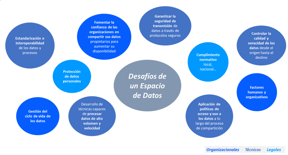De esta manera, se identifican una serie de pilares fundamentales a tener en cuenta cuando hablamos de espacios de datos: