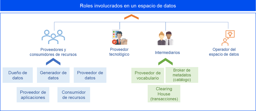 Un Espacio de Datos está formado por diferentes participantes que desempeñan diversos roles teniendo en cuenta el ámbito de actuación hacia el que estén enfocados:
