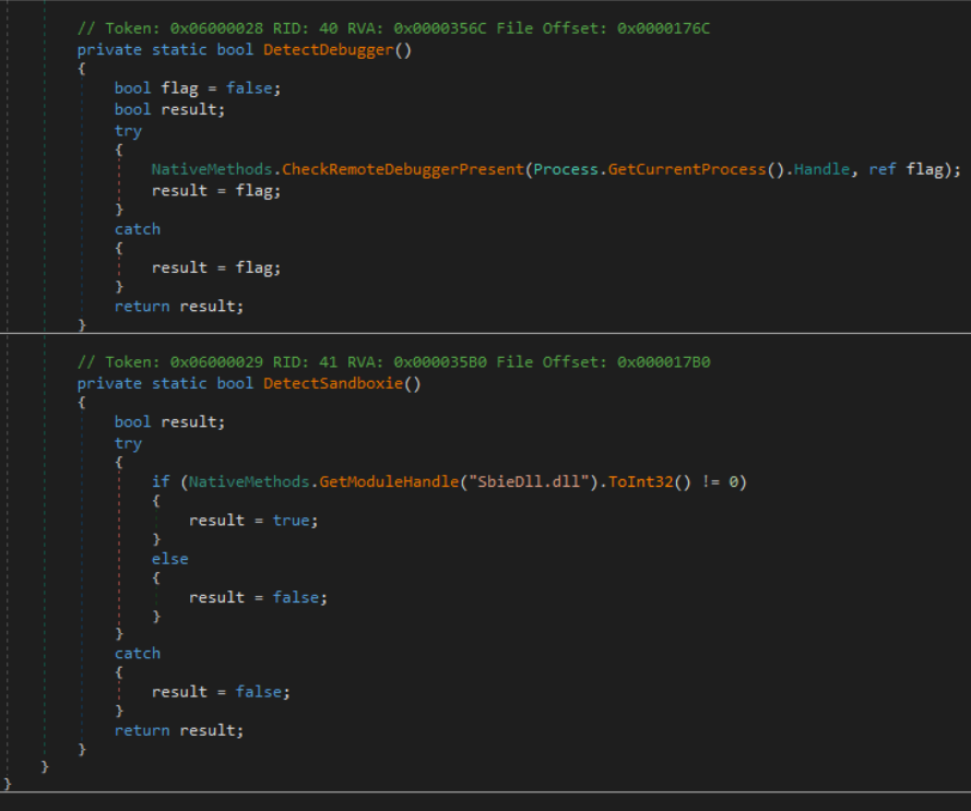 . - Esta librería (dll) tendrá capacidades para evadir análisis o ser, en ocasiones difícil o imposible de analizar por sandbox, por sus números técnicas anti-análisis que posee o por debuggers