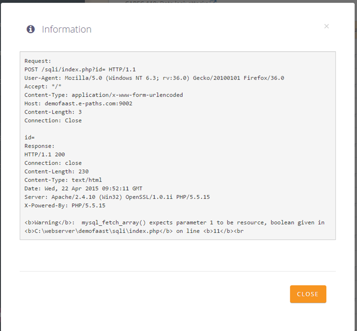 La detección de fugas de información se complementa con la detección de servidores que están en modo depuración. Este módulo se encarga de detectar configuraciones que solo deberían estar presentes en entornos de desarrollo y que no deberían usarse en entornos de producción reportando una recomendación cuando se detecta esta configuración.