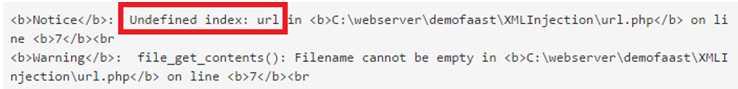 Ante las fugas de información es necesario interpretar y comprenderlas para mejorar el escaneo. Por ejemplo, en los errores de PHP podemos destacar la recuperación del usuario en los errores de autenticación de SQL. También podríamos destacar el error que el servidor muestra cuando el código del desarrollador intentar acceder a una variable que no ha sido asignada. Por defecto será null y esta excepción se mostrará en la web de esta forma:
