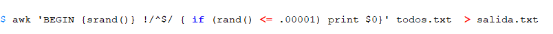 y nos quedamos con un "todos.txt" de unos 200 gigabytes. De ellas seleccionamos un grupo de cuentas al pseudoazar (todo el azar que nos permiten las matemáticas y generadores del sistema):