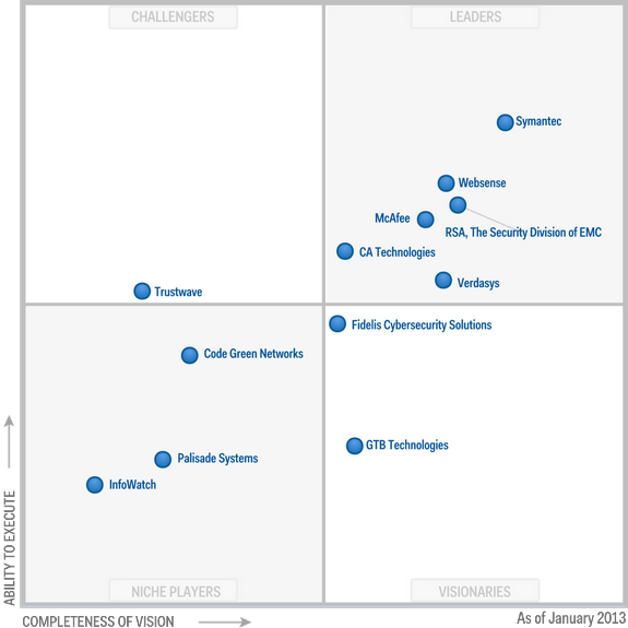 clasifica a las empresas más importantes que ofrecen soluciones de prevención de fuga de información (Data Loss Prevention o DLP) según su posición, estrategia, eficacia y liderazgo en el mercado. Hemos realizado un pequeño experimento para comprobar si estas mismas compañías