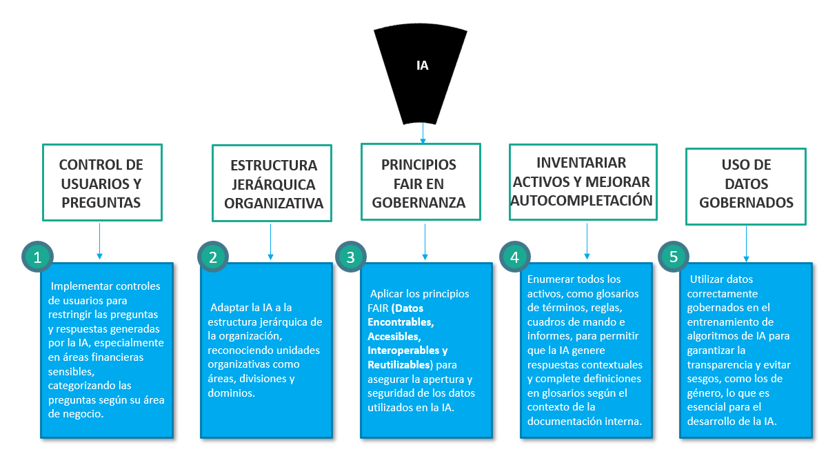 En el caso de gobernar la IA es, en estos aspectos, muy similar. La gobernanza efectiva de la IA es esencial para aprovechar al máximo una tecnología basada en el intercambio pregunta-respuesta entre el usuario y una máquina, de cara a garantizar que los datos cumplen con la responsabilidad social compartida y el uso ético de los datos en el mundo empresarial.
