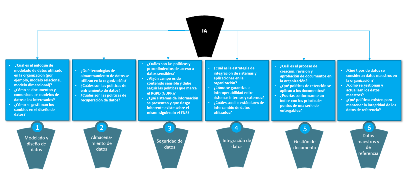 Como resumen del apartado anterior, observamos una correspondencia directa entre la IA y todas las disciplinas que nos encontramos en el framework DAMA.