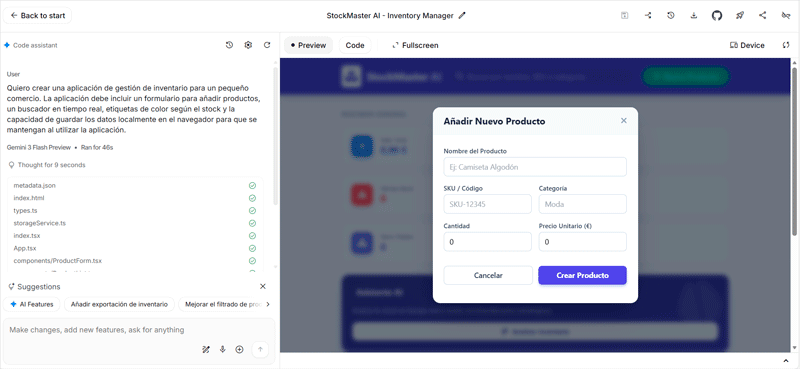 Una vez que se genera el código, el siguiente paso es ver y probar la aplicación: si la interfaz responde como se espera, si los datos persisten o no, si el flujo de interacción es claro y si la lógica coincide con la intención original.