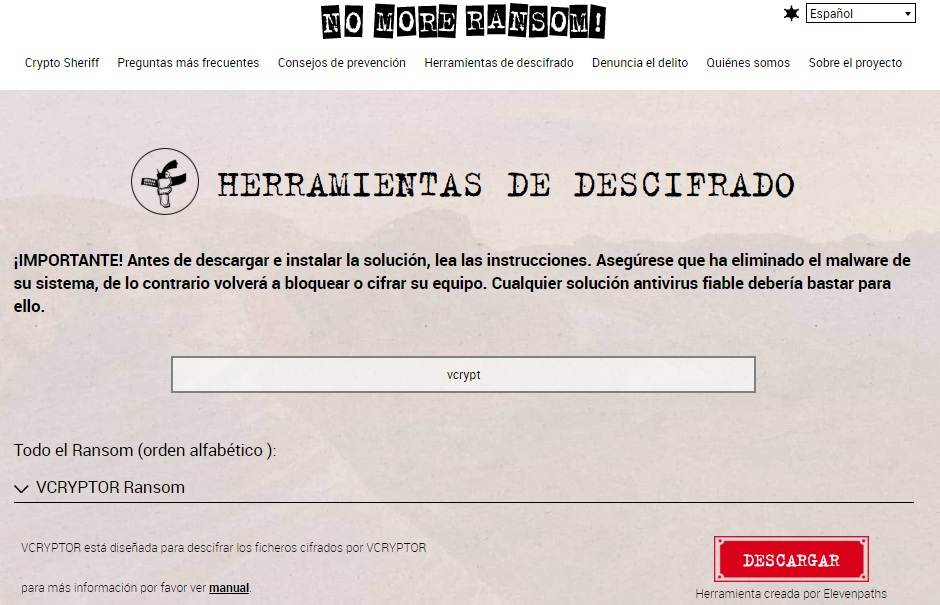 Creamos una herramienta para descifrar el ransomware VCryptor (disponible en NoMoreRansom.org)