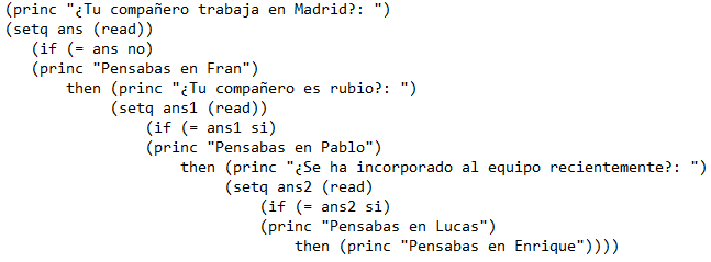 Este proceso se repetirá tantas veces como sea necesario hasta obtener una respuesta. A medida que el usuario vaya contestando preguntas, menor será el número de posibles candidatos para una respuesta final. En este breve ejemplo en cada pregunta contestada se puede obtener la respuesta o de no ser así se descarta un posible candidato.