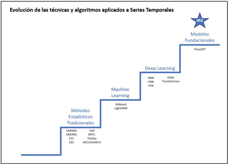 Recientemente se ha implementado el primer modelo fundacional TimeGPT-1 capaz de predecir series temporales en una amplia variedad de dominios y aplicaciones sin necesidad de entrenamiento adicional.