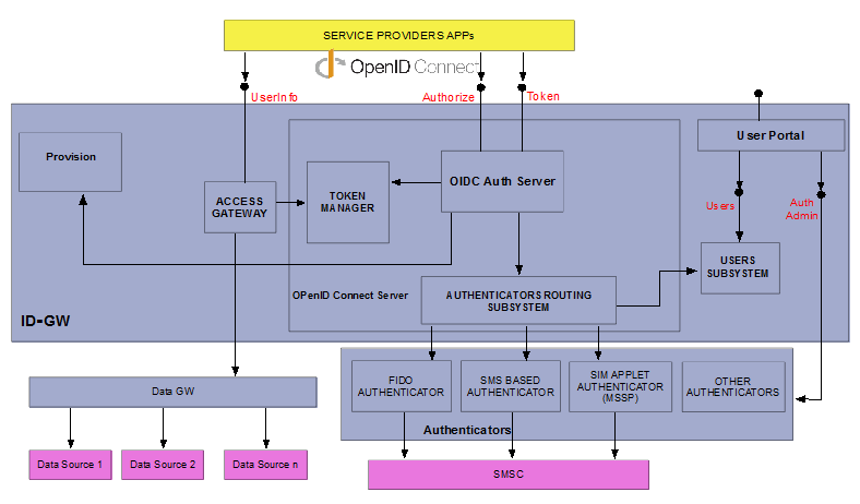 These components represent an abstraction layer that allows the ID Gateway subsystem to talk to the different authenticators in the MNO. All the Mobile Connect authenticators are Mobile Centric authenticators, that is to say, all of them authenticate the end users interacting with their Mobile phone.