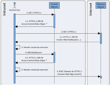 Diagrama funcional de un posible ataque. Fuente: http://application-aegis.blogspot.com.es/2012/06/html5-feature-cross-origin-resource.html