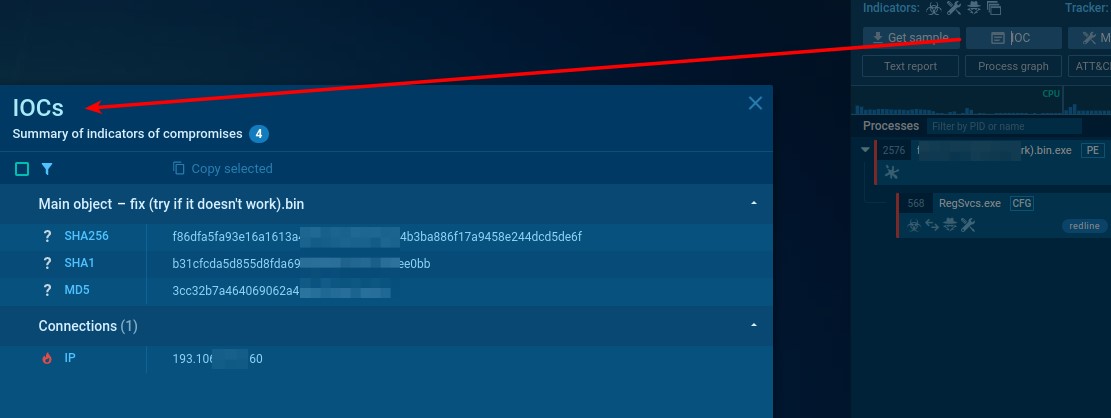 Algún Indicador de Compromiso (IoC) obtendrás de estas plataformas, como en este ejemplo: