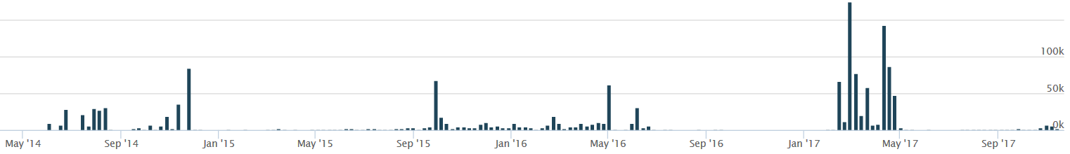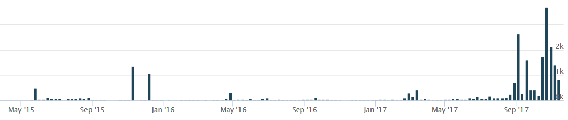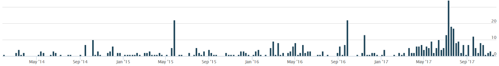 - La red Tor como opción para ocultar la localización de los servidores C&C. Vemos en el siguiente gráfico que esta práctica está siendo una tendencia durante este año.
