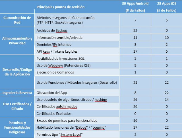 Entre los principales hallazgos de este tipo de vulnerabilidades seguimos encontrando malas practicas de desarrollo que exponen a el App a vulnerabilidades de tipo Inyección SQL y XSS (Cross Site Scripting) dado que se encuentra permitido el uso de Webviews (funcionalidad deprecada) para que puedan ejecutar código JavaScript o a su vez agregan librerías HTML.