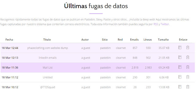 Sin contar que todos los días son robadas cientos o miles de credenciales de varios sitios, que son comprometidos por bajos niveles de seguridad, exponiendo a sus usuarios a que su información sea publicada o usada para otros fines. Existen sitios que se encargan de mostrar las publicaciones de estas fugas de información en tiempo real, como el que vemos a continuación que es de 2016.