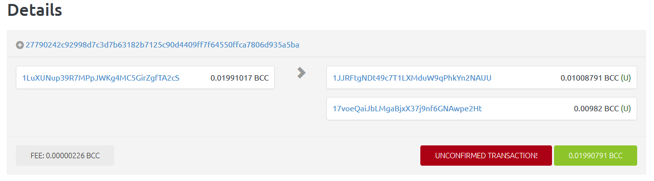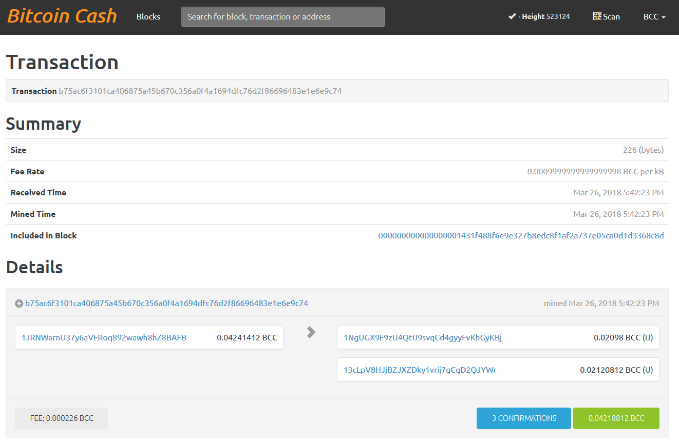 una única transacción en la que juntaron todo el saldo en Bitcoin Cash de las tres direcciones en una única dirección, concretamente en 122TBuG4jWjsfSABdNu4zNrBaREEk2a8od, a priori para simplificar la gestión.