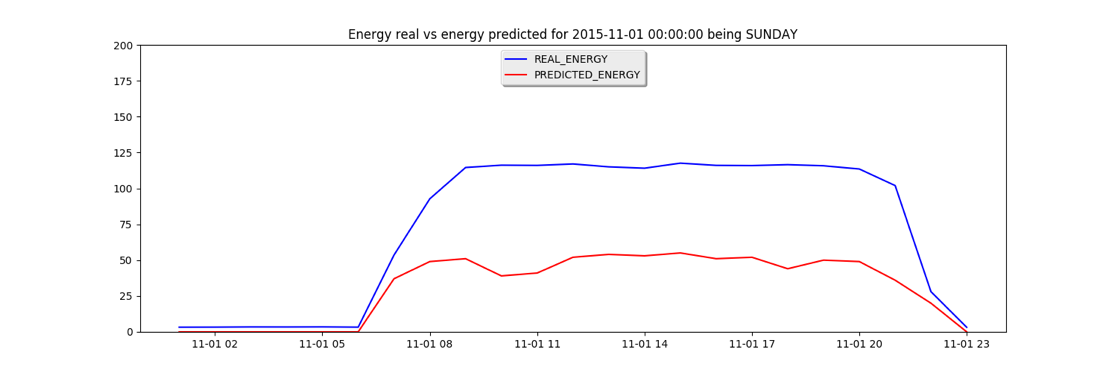 La primera versión del algoritmo se centró en los consumos de los días anteriores y los valores de temperaturas. Con esta versión, se obtuvieron resultados de calidad para días de trabajo estándar, pero no para aquellos días que no se ajustaban a ciertos patrones. Por ejemplo, si se trabajaba un domingo de forma extraordinaria, los ajustes de consumo no eran muy precisos al día siguiente, tal y como se muestra en la