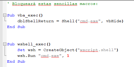 Pasemos a otra de las recetas destinadas a bloquear los problemas que nos traen las macros.