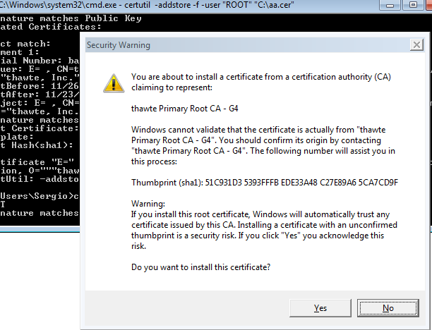 - Desde la perspectiva de los certificados TLS, la relación con el malware es más indirecta, pero interesante, como muestra este mismo ejemplo, del que podemos sacar varias conclusiones: Podríamos estar ante una nueve tendencia interesante en la que el malware bancario intenta abusar de forma sencilla de los certificados raíz. Si bien esta muestra no es especialmente reciente, es pronto para saber la relevancia del alcance. Además, se podría reclamar a Microsoft, como medida de precaución, que exija la elevación con atenuación de escritorio para instalar certificados raíz. Firefox, por su parte, ni siquiera emite una advertencia de que se va instalar el certificado.