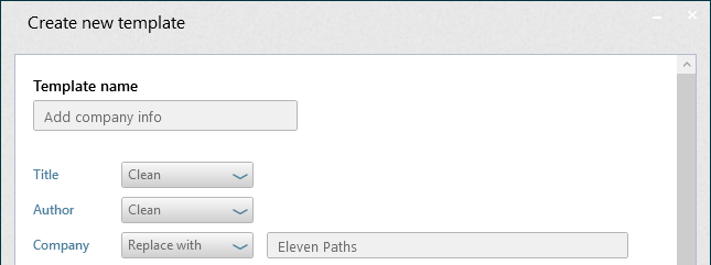 Of course, the profile and template based cleaning system known from other "Metashield" products is maintained. For the sake of example, let’s see a real world configuration where documents should include information about a company but all other metadata is cleaned: